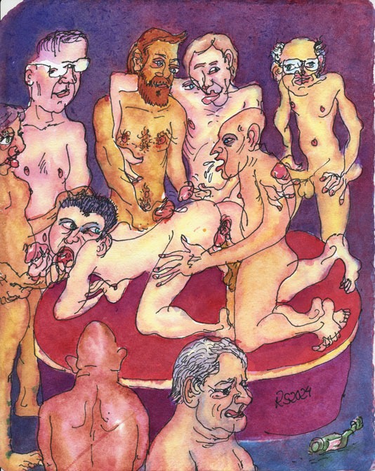 Blindgezeichnete Tuschezeichnungen und Aquarelle 2023 - 2024